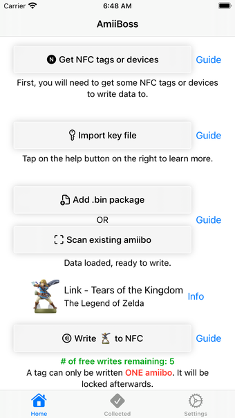 O AmiiBoss está disponível para iOS 16.4 e superior. A versão atual do aplicativo é 7.6 e você só pode executá-lo em inglês.